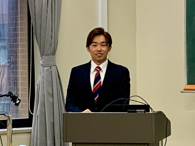 大学院地域創造学専攻の最終発表会と時を同じくして、別室では地域創造学類・健康スポーツコースの卒論発表会が行われました。本研究室からは高木くんが堂々と発表し、質疑応答にもそつなく回答していました。