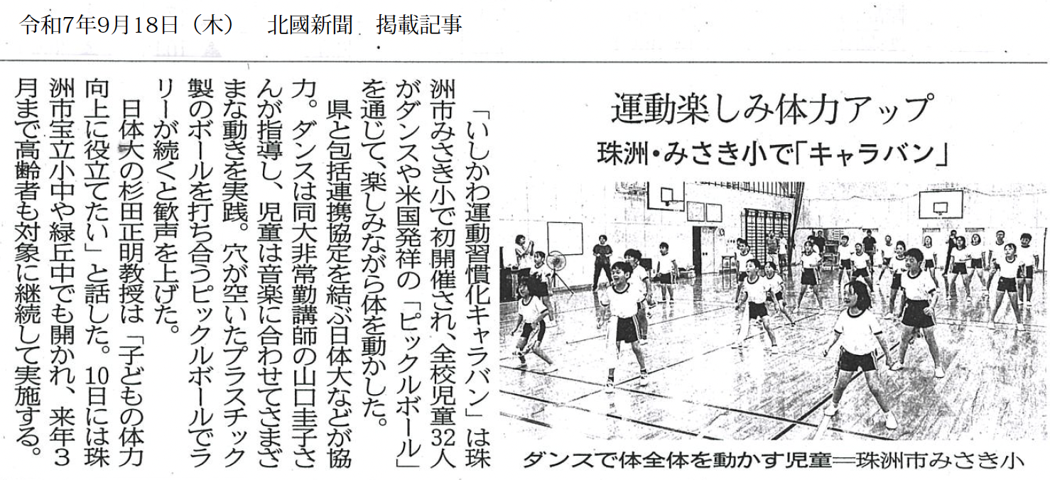 先日の能登支援事業;いしかわ運動習慣化キャラバンが地元新聞(北國新聞)に掲載されていました。